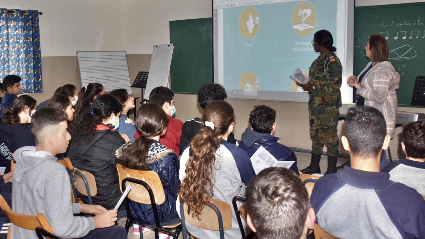 UNIFIL’s Ghanaian peacekeepers recently initiated cholera education classes in schools within their area of responsibility in south Lebanon. Their Civil-Military Co-operation (CIMIC) team met with students and teachers at Yarin Public Elementary School and Our Lady of Lebanon School in Rumaysh.