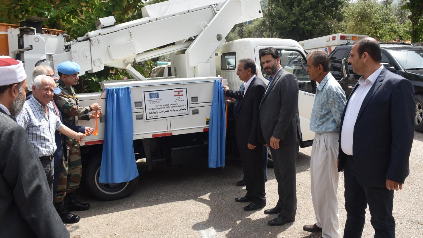 In order to mitigate those risks, UNIFIL donated a utility truck – fully equipped to meet the needs of the townspeople – to the Municipality of Kfar Hamam, south-eastern Lebanon, on 8 June.