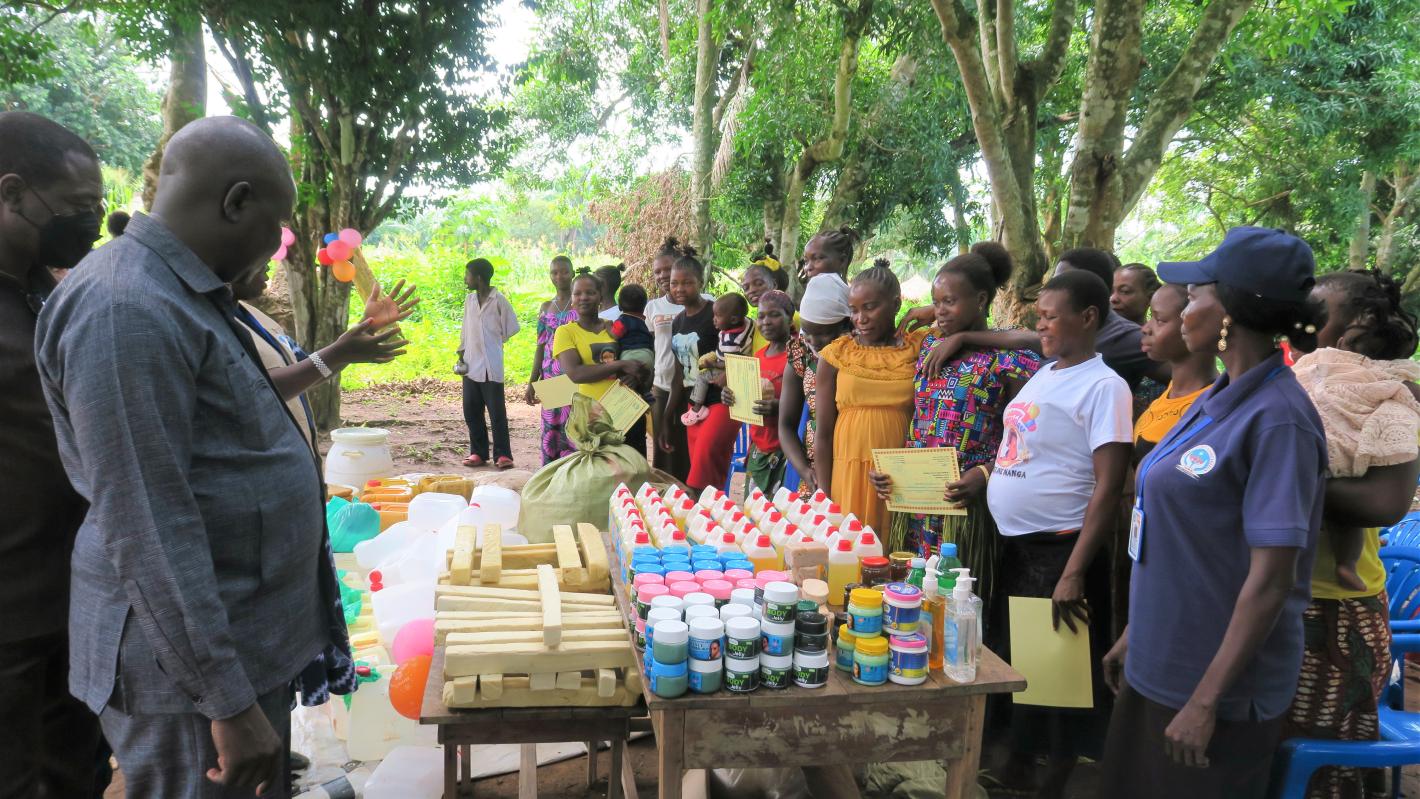 At a time when communities across South Sudan are suffering from a rapidly deteriorating economic situation, assistance to enhance their business skills and improve opportunities to sustain their families is more important than ever.In response, the United Nations Mission in South Sudan has been funding training activities across the Western Equatorian State to help alleviate poverty and boost economic development, including empowering more than 200 people with new vocational skills. In Sakure Payam in Nzara County, 30 women and 10 men have graduated from a six-month long UNMISS-funded programme to train them in the production of cosmetics as well as beekeeping. This training project was first initiated by the mission four years ago and is popular with the community..“This activity has changed our mindset and will empower us to rely on ourselves. Now we can make our own soap, body lotion, and hair shampoo for our families as well as to take it to the market,” said graduate Sylvia Sarah Alex.Several trainees have significantly advanced their businesses after completing the programme, said Yabang Emelia Moses, the Executive Director of the Anika Women Association, a community-based organization in Yambio which conducted the training. "We have successfully trained 220 participants who are making significant progress as a result," she said. The State Minister of Cooperatives and Rural Development, Yoana Robert Mark, presided over the graduation ceremony and noted the importance of the training for female participants particularly.“Working women in society are valuable assets that contribute to community development.”UNMISS representative, Tahiru Ibrahim, expressed the mission’s ongoing commitment to supporting government efforts to build the capacity of communities across the country to be self-sustaining and to foster peace and development.