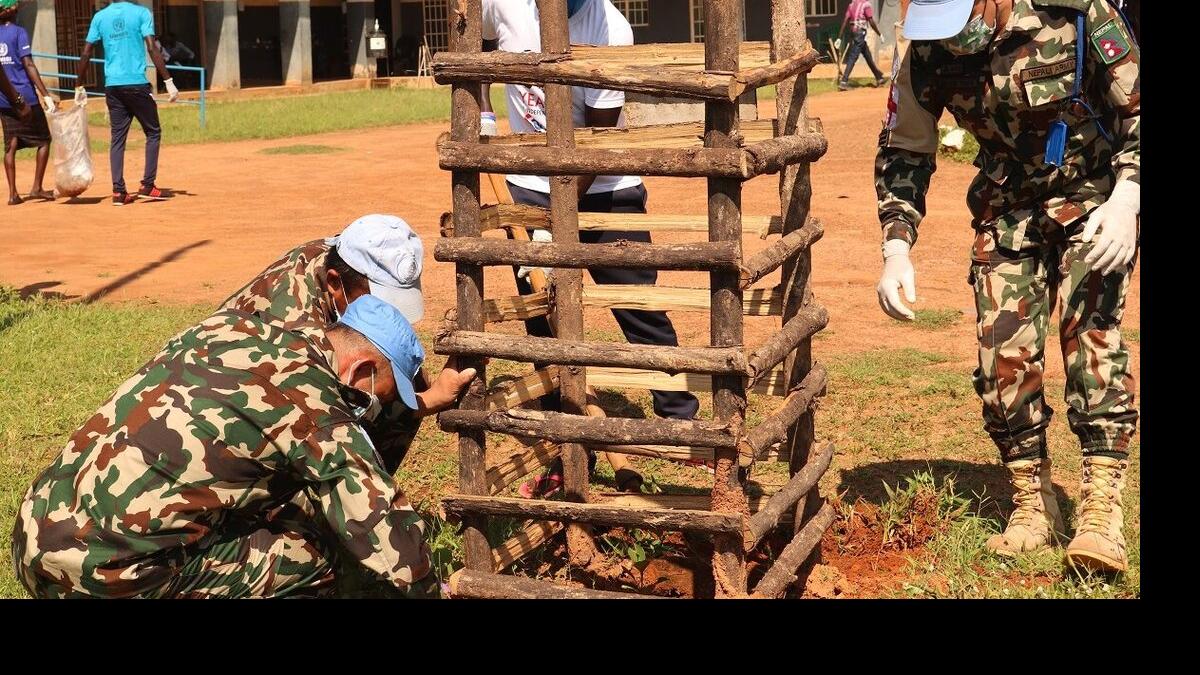 Some 50 young people in Yei commemorated last week's International Youth Day by volunteering to plant trees and clean up hospital premises. Photo by Surur Ali Aliye/UNMISS.