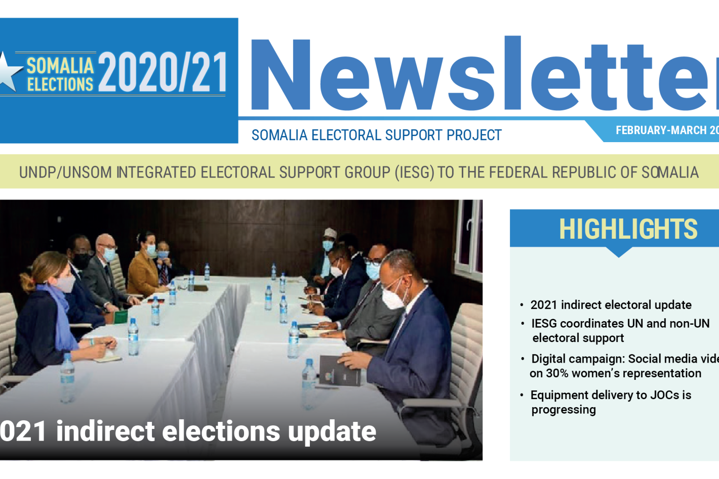 News from our Missions Updates from UN special political missions supporting conflict prevention, mediation, peacebuilding and political processes worldwide. ClearStart dateEnd date Apply 23 March 2021UNOWASMaritime security23 March 2021UNSOM Statement attributable to the Spokesperson for the Secretary-General – on Somalia21 March 2021UNSOM International partners call for Somali leaders to reach agreement19 March 2021UNSOM IESG Newsletter, February-March 202118 March 2021UNSCOLUN's Najat Rochdi Briefs the Security Council18 March 2021UNSMILStatement by the Co-Chairs (Algeria / Germany / League of Arab States / UNSMIL) of the Political Working Group of the International Follow-Up Committee on Libya17 March 2021UNSCOLUN’s Najat Rochdi Briefs the UN Security Council16 March 2021UNRCCAUNRCCA, UNOCT-UNCCT and UNODC conduct a regional workshop on preventing and combating the illicit trafficking of small-arms and light weapons and their supply to terrorists16 March 2021UNRCCAUNRCCA and the Government of Canada organized a water and health nexus seminar focusing on gender equality15 March 2021UNSOM Somalia receives first batch of COVID-19 vaccines under the COVAX initiative15 March 2021UNSOM Arrival and rollout of COVID-19 vaccines in Somalia15 March 2021UNOAUFourteenth UN-AU Annual Consultative Meeting on Prevention and Management of Conflicts (Desk-to-Desk) held virtuallyPaginationGo to first pageGo to previous page…Goto page 213 Goto page 214 Goto page 215 Goto page 216 Current page 217 Goto page 218 Goto page 219 Goto page 220 Goto page 221 …Go to next pageGo to last page