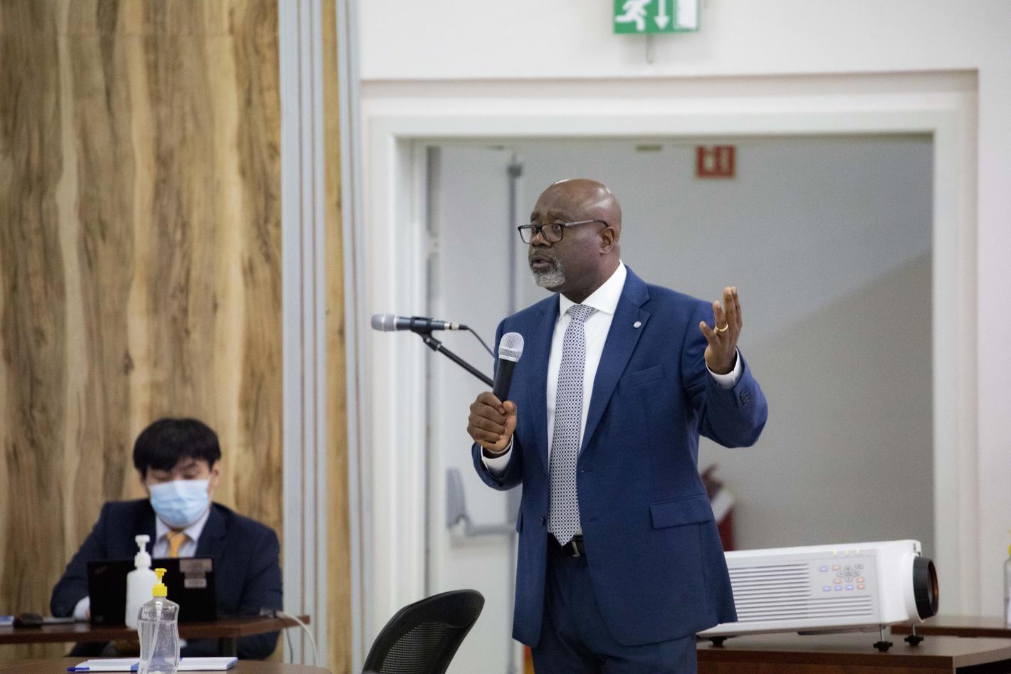 13/04/2022, Entebbe; “Can you perform the same function routinely for 10 years without an impact on you and the organization? Sitting in the same place for so many years can make one unproductive.” Paulin Djomo, Director a.i…