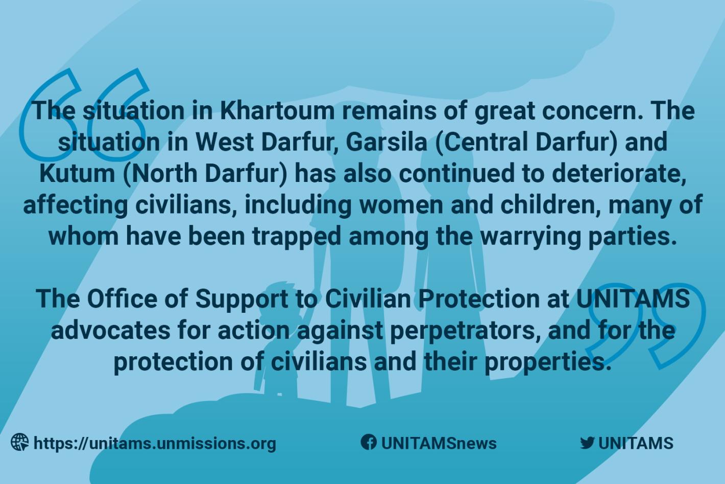 The Office of Support to Civilian Protection in the United Nations Integrated Transition Assistance Mission in Sudan (UNITAMS) continues to monitor the human rights and protection situation in the country. The situation in…