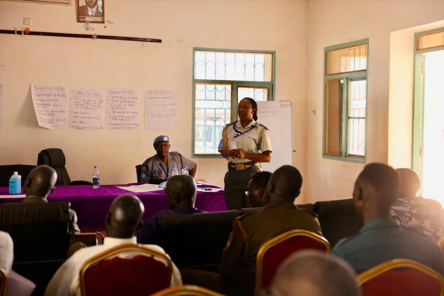 Margaret Othow, an electrician working with UNMISS in Malakal, speaks about being the only woman in her team and choosing to train in what is considered an unusual profession for women in South Sudan. Photo by Samson Liberty…