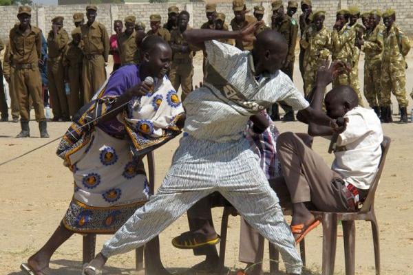 Youth in Unity State capital Bentiu taking part in drama during International Human Rights Day celebrations on 10 December. Photo: UNMISS / Anna Adhikari