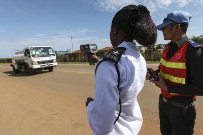 Monitoring speed in the week-long Road Safety Awareness Campaign launched by UNMISS and the South Sudan National Police Service (SSNPS) in Juba on 4 November. Photo: UNMISS/Martine Perret