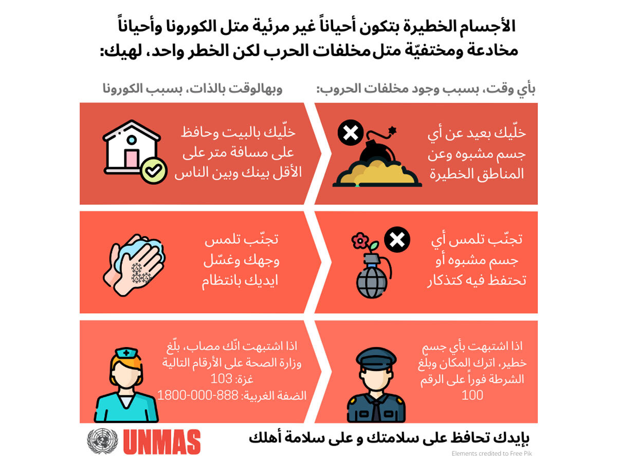In Gaza, UNMAS has supported humanitarian partners throughout hostilities and during ceasefire periods, enabling humanitarian response by providing assessments and guidance relating to explosive ordnance threats. Particularly in ceasefire periods, UNMAS supports early recovery efforts, recognising that humanitarian mine action is an essential prerequisite for all recovery and reconstruction efforts, including debris management and rubble removal. Working with local and international partners, UNMAS also disseminates explosive ordnance risk education (EORE) messaging to civilians, to ensure people know how to adopt safe behaviours. In the West Bank, UNMAS supports EORE and capacity enhancement efforts with local non-governmental organizations and the Palestinian Authority (PA), including the Palestinian Mine Action Center (PMAC) and PA Explosive Ordnance Disposal (EOD) Police.