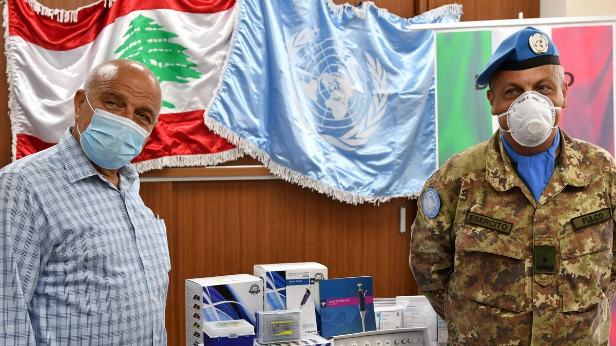 UNIFIL Sector West Commander Brig. Gen. Diego Fulco (right) with the Mayor of Tyre Hassan Dbouk during a donation ceremony on 8 June 2020. (Photo: Major Igor Piani / UNIFIL) UNIFIL Italian peacekeepers donated 210 PCR kits…