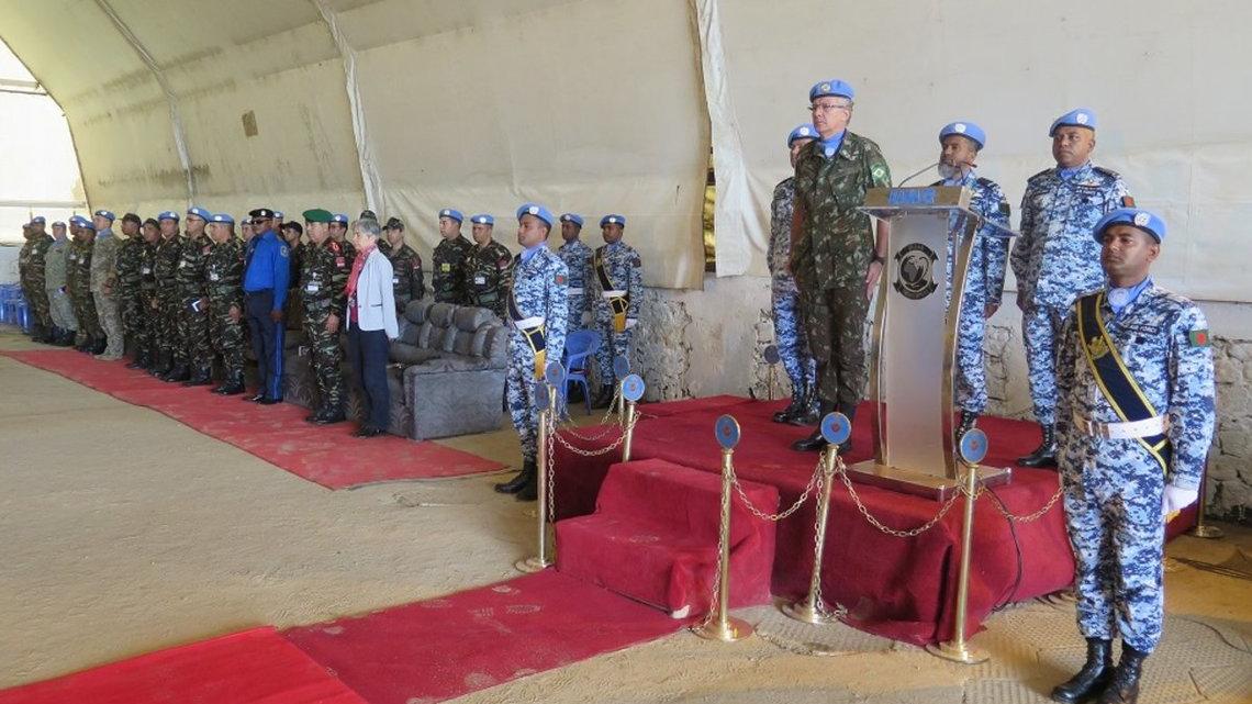 Pour sa tournée d’au revoir aux Casques bleus de la MONUSCO basés en Ituri, le Commandant de la Force séjourne à Bunia depuis ce jeudi 10 octobre 2019. L’occasion pour le General Elias Rodriguez Martins Filho de rendre hommage aux soldats de la Paix du contingent bangladais mais aussi de lancer un appel à tous les casques bleus de se battre sui nécessaire pour la protection des civils, cœur du mandat de la MONUSCO.