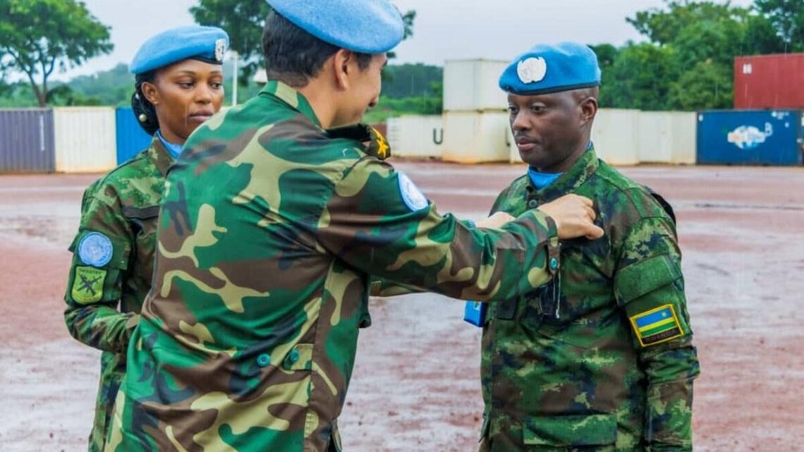 Un total de 745 Casques bleus du 2ᵉ bataillon rwandais de la MINUSCA (RWABAT 2), dont 68 femmes, ont été décorés de la médaille des Nations Unies en reconnaissance de leur service distingué et de leur dévouement à la paix et à la stabilité en République centrafricaine (RCA). La cérémonie s’est tenue le 12 août 2025 à Bossembele (préfecture de l’Ombella-M’Poko), en présence du colonel Mohamed El Hassany, représentant le Chef de la Force de la Mission, du commandant de RWABAT 2, le lieutenant-colonel Ndanyuzwe Muzindutsi, ainsi que des autorités locales et représentants communautaires.