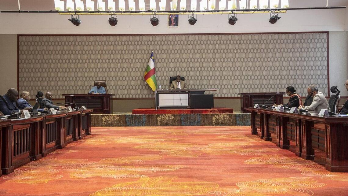 Le président de la République, Faustin Archange Touadéra, a présidé, le mardi 6 août 2025 à Bangui, une réunion de haut niveau visant à soutenir la mise en œuvre du processus de Désarmement, Démobilisation et Réinsertion (DDR), dans le cadre de l’accord de paix signé le 19 avril 2025 à N'Djamena. Étaient présents : le Premier ministre, des membres du gouvernement, des représentants du corps diplomatique, les garants et facilitateurs de l’Accord politique pour la paix et la réconciliation en République centrafricaine, ainsi que les partenaires techniques et financiers, dont la MINUSCA, représentée par sa cheffe, Valentine Rugwabiza.