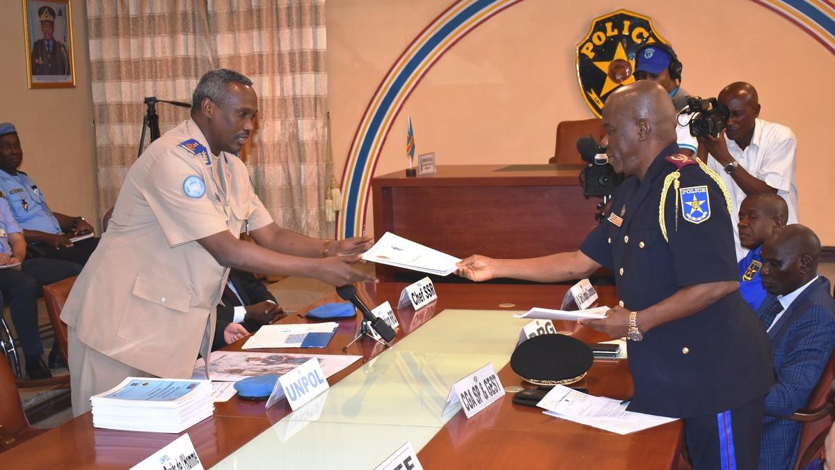En répondant donc à la sollicitude de la Direction du Service Juridique et du Contentieux de la PNC, le Général Awalé ABDOUNASIR, Chef de la Composante de la Police MONUSCO a exprimé sa satisfaction de pouvoir remettre au nom de la MONUSCO, cet important lot de documents didactiques pour la formation des agents de la PNC. C’était en présence du Directeur adjoint de la Division Droit de l’Homme et du Chef de la Réforme du Secteur de la Sécurité de la MONUSCO.Cette cérémonie s’est achevée par un cocktail offert par le Commissariat Général de la PNC, avant la photo de famille, dans une ambiance fraternelle.