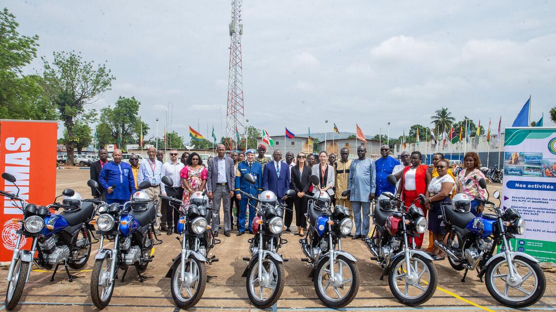La Commission nationale de lutte contre la prolifération des armes légères et de petit calibre (COMNAT-ALPC) a réceptionné, le 13 novembre 2025, à Bangui, sept motos ainsi que des équipements de sécurité offerts par la MINUSCA. Ce don soutient la décentralisation et le fonctionnement opérationnel des sept bureaux régionaux de la Commission.