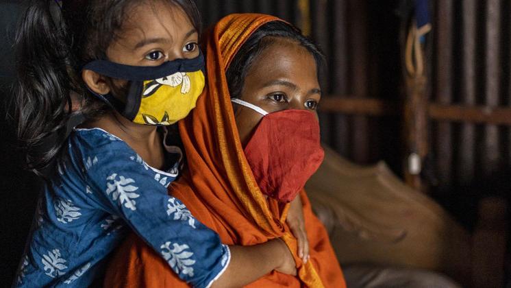 Des personnes déplacées font la queue pour recevoir l'aide du PAM dans la province du Sud-Kivu, en République démocratique du Congo. Photo : PAM/Musa Abema