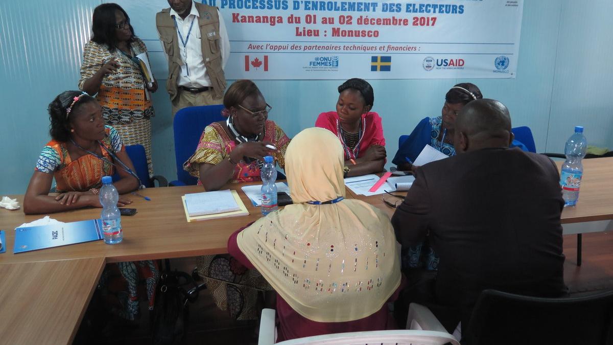 Kananga, 06 Dec.-17 : Du 1er au 5 Décembre la section électorale de la MONUSCO, le PNUD et ONU-Femmes ont organisé un atelier de renforcement des capacités dans le cadre de l’enrôlement des électeurs au Kasaï central. 30 femmes issues des cinq territoires du Kasaï central et de la ville de Kananga, dont des femmes journalistes, ont pris part à cet atelier qui vise à les outiller en techniques de sensibilisation en vue de booster leur participation au processus d’enrôlement qui est toujours en cours jusqu’en Janvier 2018.
