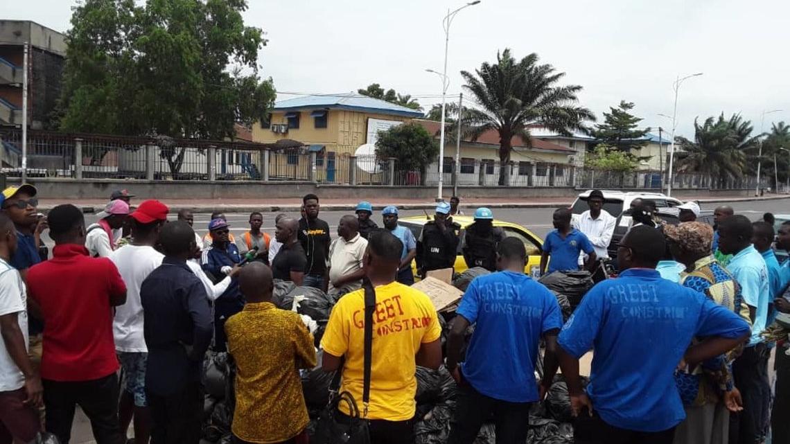 A cette occasion, les policiers de la MONUSCO ont échangé des jeunes du « Comité de suivi des actions du chef de l’Etat » rassemblés sur la place des évolués, à Gombe, dans le cadre d’une marche de sensibilisation sur la propreté de la ville dénommée ‘Kinshasa Ville propre’.