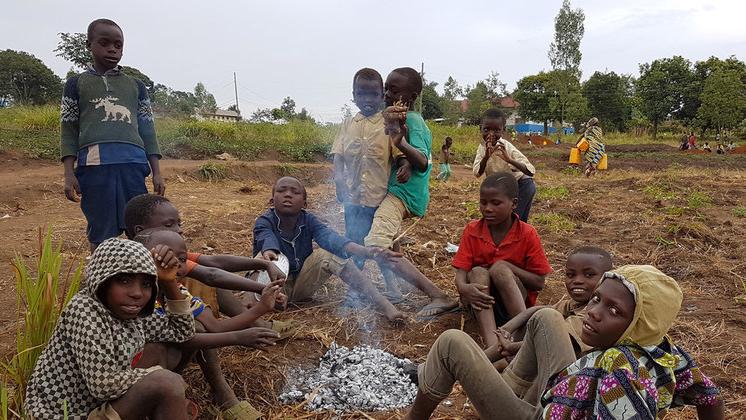 Des personnes déplacées font la queue pour recevoir l'aide du PAM dans la province du Sud-Kivu, en République démocratique du Congo. Photo : PAM/Musa Abema
