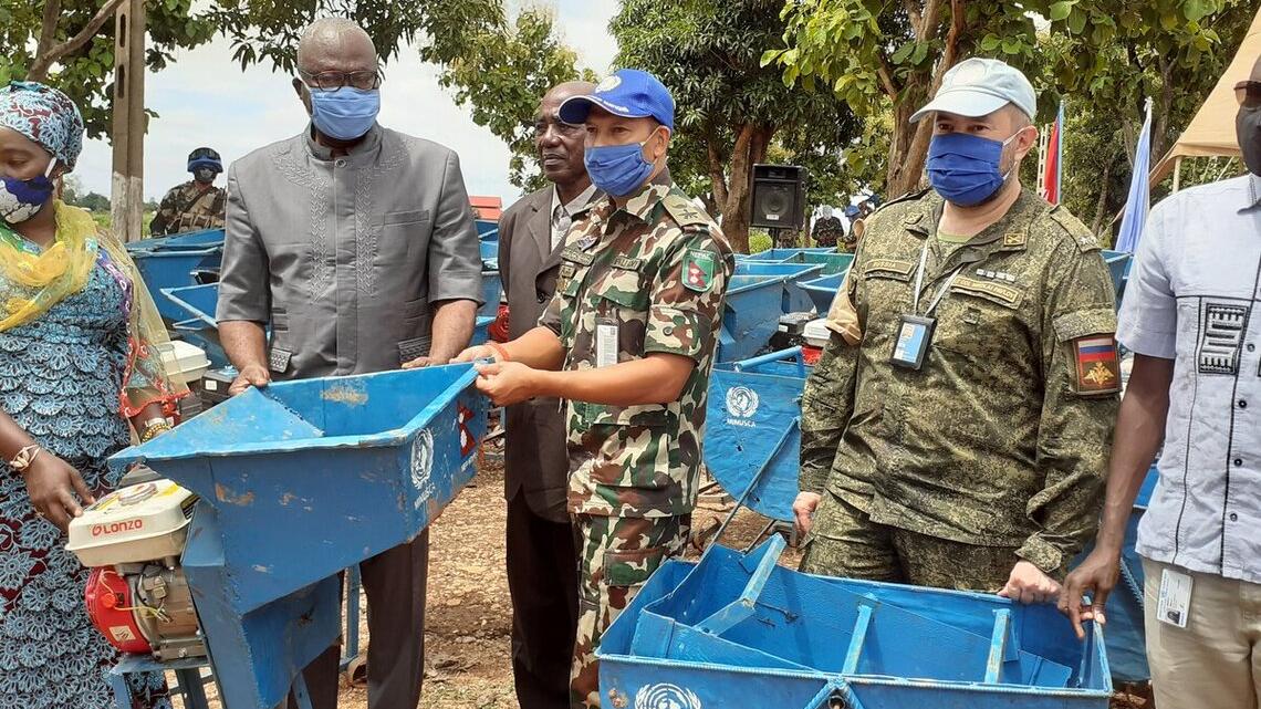 Trois lots de matériels dans le cadre de Projets à impact rapide (QIPS) initiés par la Section des affaires civiles de la MINUSCA ont été remis sous la présidence du Préfet, en présence du Chef de bureau par intérim de la MINUSCA et de nombreuses autorités locales.