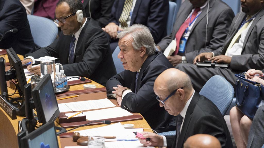 « La situation dans le Sahel nous interpelle tous. La pauvreté, le sous-développement et le changement climatique ont contribué aux crises humanitaires et sécuritaires. La faiblesse des institutions, l'exclusion et la marginalisation de certains groupes sont exploitées par les extrémistes et les terroristes », a déclaré M. Guterres lors de ce débat auquel participaient notamment le Ministre français des affaires étrangères, Jean-Yves Le Drian, et le Ministre malien des affaires étrangères, Abdoulaye Diop.