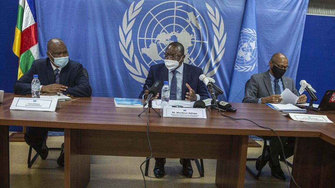 Le Représentant spécial du Secrétaire général des Nations Unies en République centrafricaine et Chef de la MINUSCA, Mankeur Ndiaye, a réitéré l’engagement de la Mission onusienne à travailler avec le nouveau Gouvernement et les autorités centrafricaines. « Je renouvèle mon engagement et mon entière disponibilité à travailler étroitement avec le Premier ministre Henri Marie Dondra, et son Gouvernement, conformément au mandat de la MINUSCA, pour le renforcement de notre partenariat, sur la base de la confiance mutuelle », a déclaré Mankeur Ndiaye mercredi au cours d’une conférence de presse à Bangui.