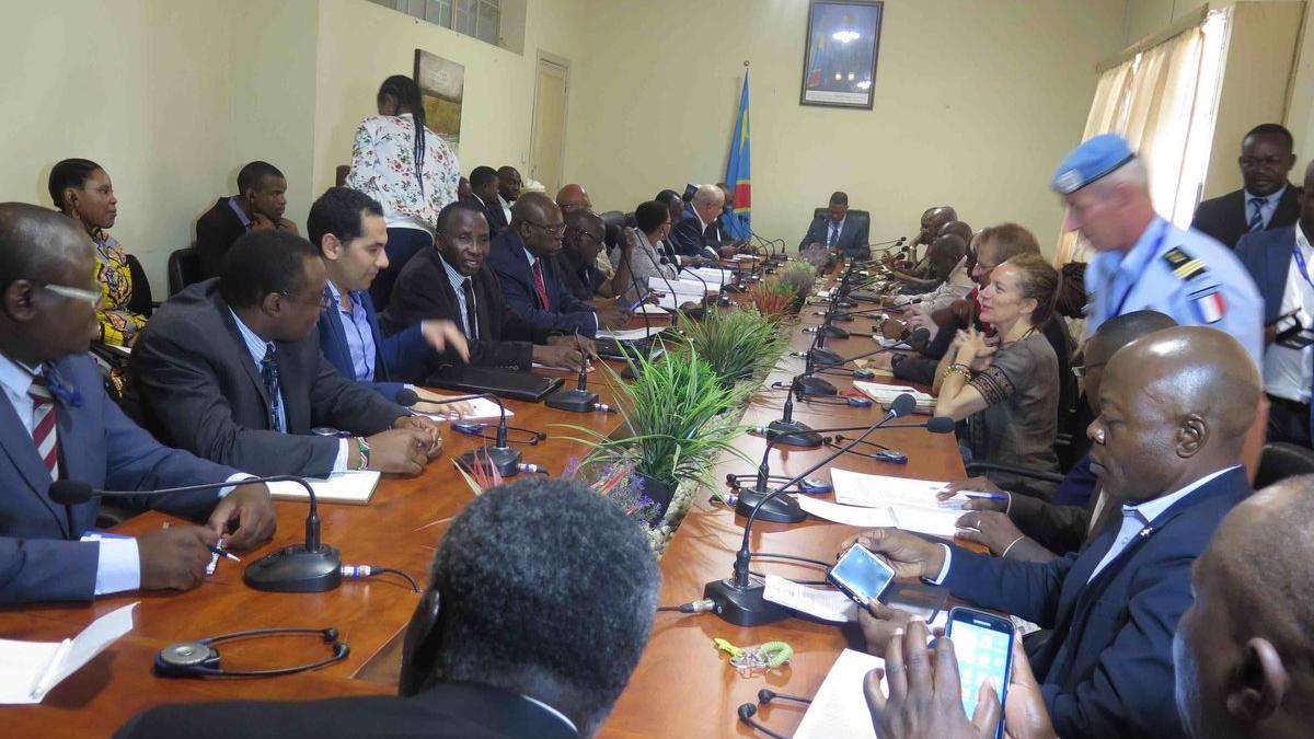 La délégation s’est entretenue avec différents acteurs à Kananga notamment le Vice-Gouverneur et le Conseil provincial de sécurité du Kasaï central, la MONUSCO et la société civile en vue de s’enquérir de la situation de Paix et de sécurité dans le Kasaï central en proie aux conséquences du phénomène milice Kamuina Nsapu.