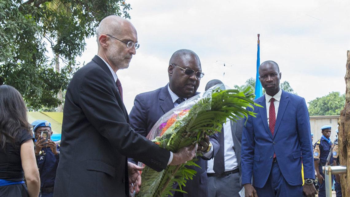 Avec pour thème central « 70 ans de service et de sacrifice pour la paix dans le monde », la célébration de la Journée internationale des Casques bleus a été, ce mardi 29 mai 2018, l’occasion pour la MINUSCA représentée par le Représentant spécial adjoint en charge des affaires politiques et de la protection des civils, Kenneth Gluck, et pour le gouvernement représenté par le Premier Ministre Simplice Mathieu Sarandji, de réaffirmer leur engagement mutuel à protéger les populations et rétablir la paix en Centrafrique.