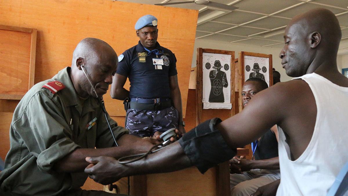 Des listes de passage ont donc été établies et les visites ont pu commencer sous l’encadrement de la direction générale de la santé militaire, avec la participation de médecins militaires nationaux soutenus dans l’accomplissement de ces contrôles médicaux par la MINUSCA, par le biais de médecins des Unités de police constituées (UPC) du Rwanda, du Sénégal, du Cameroun et de la Mauritanie.