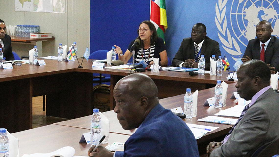 Depuis 2015, la MINUSCA organise, sur une base trimestrielle, une rencontre avec les membres du Corps diplomatique accrédités en RCA, les organisations sous régionales et internationales, telles la Communauté Économique des États de l'Afrique Centrale (CEEAC) et l’Union africaine (UA), ainsi que les agences du système des Nations Unies, aux fins d’harmoniser les informations de terrain, défis et perspectives en matière de promotion des droits de l’homme en République centrafricaine. Ce mercredi 30 mai 2018, un accent particulier a été mis sur les violences sexuelles liées aux conflits, ainsi que sur la situation des enfants associés aux groupes armés. « Ces violations figurent parmi les plus récurrentes, avec comme principaux auteurs les groupes armés et les agents de l’État », à en croire le directeur de la Division des droits de l’homme de la MINUSCA, Musa Yerro Gassama. Ce sont ainsi plus de 1.434 cas de violation des droits de l’homme qui ont été documentées entre janvier et mai 2018, a-t-il fait savoir. Les pics d’incidents se situant dans les préfectures de la Haute-Kotto (Bria), la Ouaka (Bambari), de Mbomou (Bangassou), de Haut-Mbomou (Obo/Zemio), de l’Ouham (Bossangoa), de Nana-Grebizi (Kaga Bandoro) et de l’Ouham-Pende (Paoua). « L’absence de l’autorité de l’État dans certaines zones, l’absence ou le mauvais état des infrastructures, les facteurs culturels tels que les règlements à l’amiable ou encore les mouvements des populations figurent au chapitre des défis » en ce qui concerne la lutte contre les violences sexuelles liées aux conflits, a, pour sa part, indiqué la Conseillère principale à la protection des femmes de la MINUSCA, Beatrix Attinger Colijn. Devant ces défis qui concernent en grande partie aussi la situation des enfants enrôlés dans les groupes armés, Ange Atta, de l’Unité de protection de l’Enfant, s’est tout de même réjoui des avancées notables effectuées par la MINUSCA en faveur desdits enfants. Il s’agit, notamment, de la nomination de points focaux au sein des groupes armés Union pour la paix en Centrafrique (UPC) et Front populaire pour la renaissance de la Centrafrique (FPRC) pour s’assurer de l’application effective de l’engagement pris lors du forum national de Bangui ; de la mise en œuvre d’un projet de plan d’action avec les groupes Mouvement patriotique pour la Centrafrique (MPC), UPC et FPRC ; et enfin, la séparation de 1.816 enfants d’avec les groupes armés en 2017. La rencontre de ce jour a aussi vu une participation active des diplomates qui n’ont pas hésité à faire des propositions quant à la justice transitionnelle, au vetting ou encore à l’établissement d’un environnement plus protecteur.