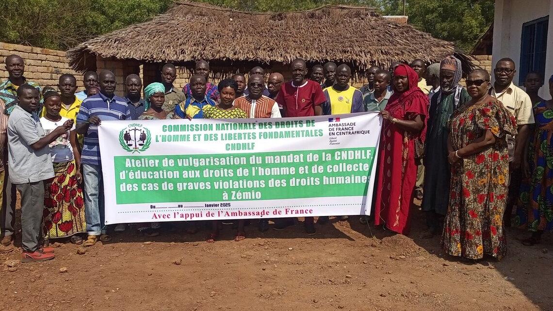 À Zémio, dans la préfecture du Haut-Mbomou, les autorités locales et les acteurs locaux impliqués dans la protection des droits de l’homme ont participé, le 01 février 2025, à un atelier d’information sur le mandat de la Commission nationale des Droits de l’Homme et des libertés fondamentales (CNDHLF). Financée par l’ambassade de France et mise en œuvre avec l’appui de la MINUSCA, cette initiative a pour objectif de sensibiliser à l’importance de la promotion et de la protection des droits de l’homme et aussi de documenter les cas graves de violations des Droits Humains.