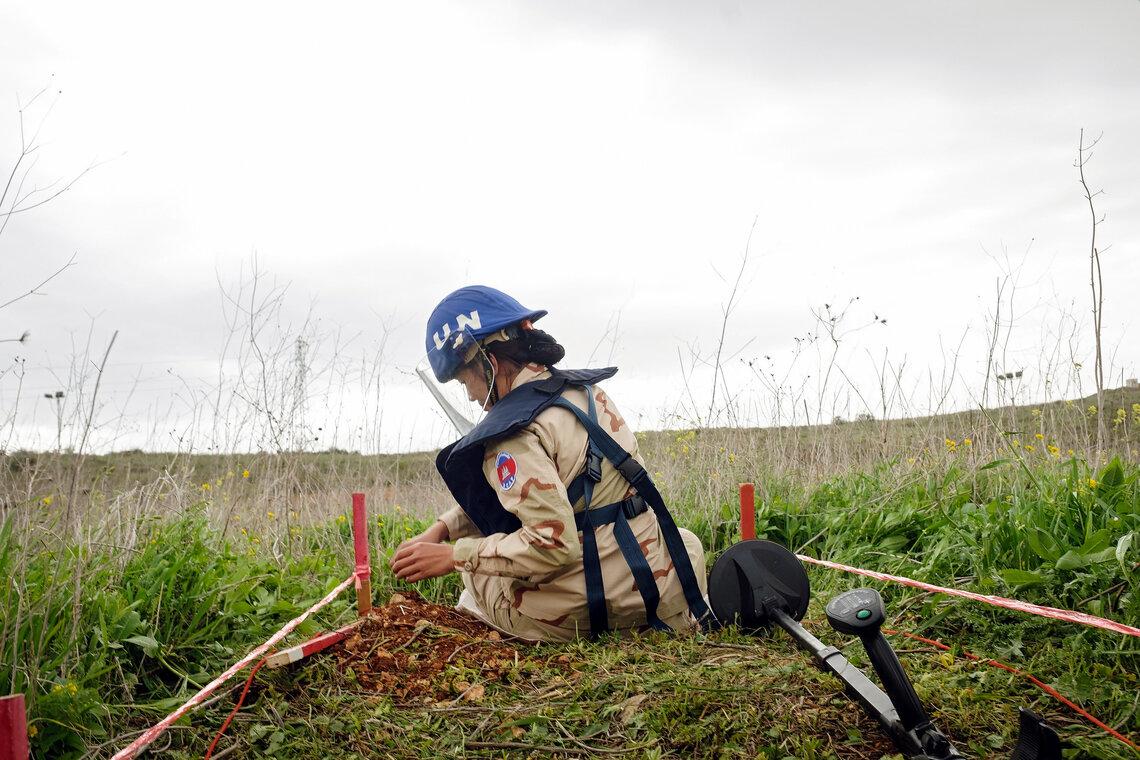 Une Cambodgienne ayant grandi au milieu des mines terrestres les neutralise aujourd’hui en tant que Casque bleu de l’ONU au Liban. Une cheffe de la société civile soudanaise incite les femmes déplacées à se réapproprier leur voix dans les processus de paix. De jeunes activistes issus des communautés divisées de Chypre favorisent le dialogue et la compréhension au sein d’un conflit profondément complexe et de longue date. Ce ne sont là que quelques-unes des histoires extraordinaires racontées dans « Regards croisés : Les femmes en marche pour la paix », une exposition de photos dont la première a eu lieu le 7 juin 2025 au Brooklyn Bridge Park dans le cadre du festival Photoville.