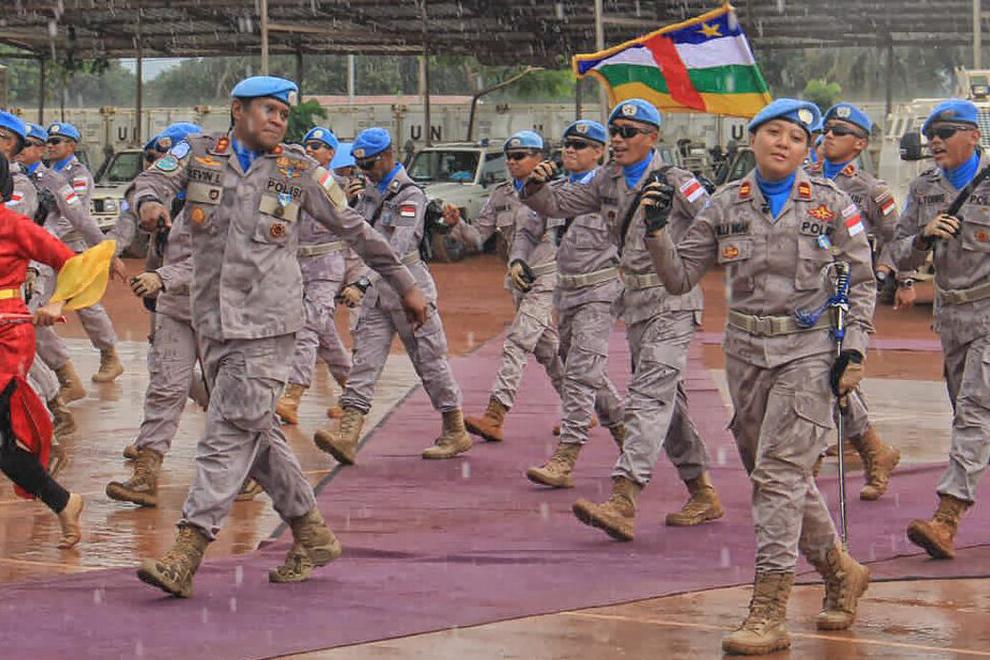 140 Casques bleus de l’Unité constituée de la police indonésienne, dont 18 femmes déployés au sein de la Minusca ont reçu la médaille des Nations Unies, le 10 aout 2022, après 11 mois de service en RCA, lors d’une cérémonie…