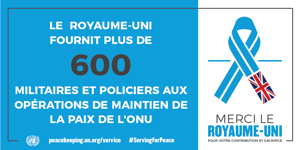 Février 2019 - Les Nations Unies remercient le Royaume-Uni pour sa contribution inestimable au maintien de la paix.